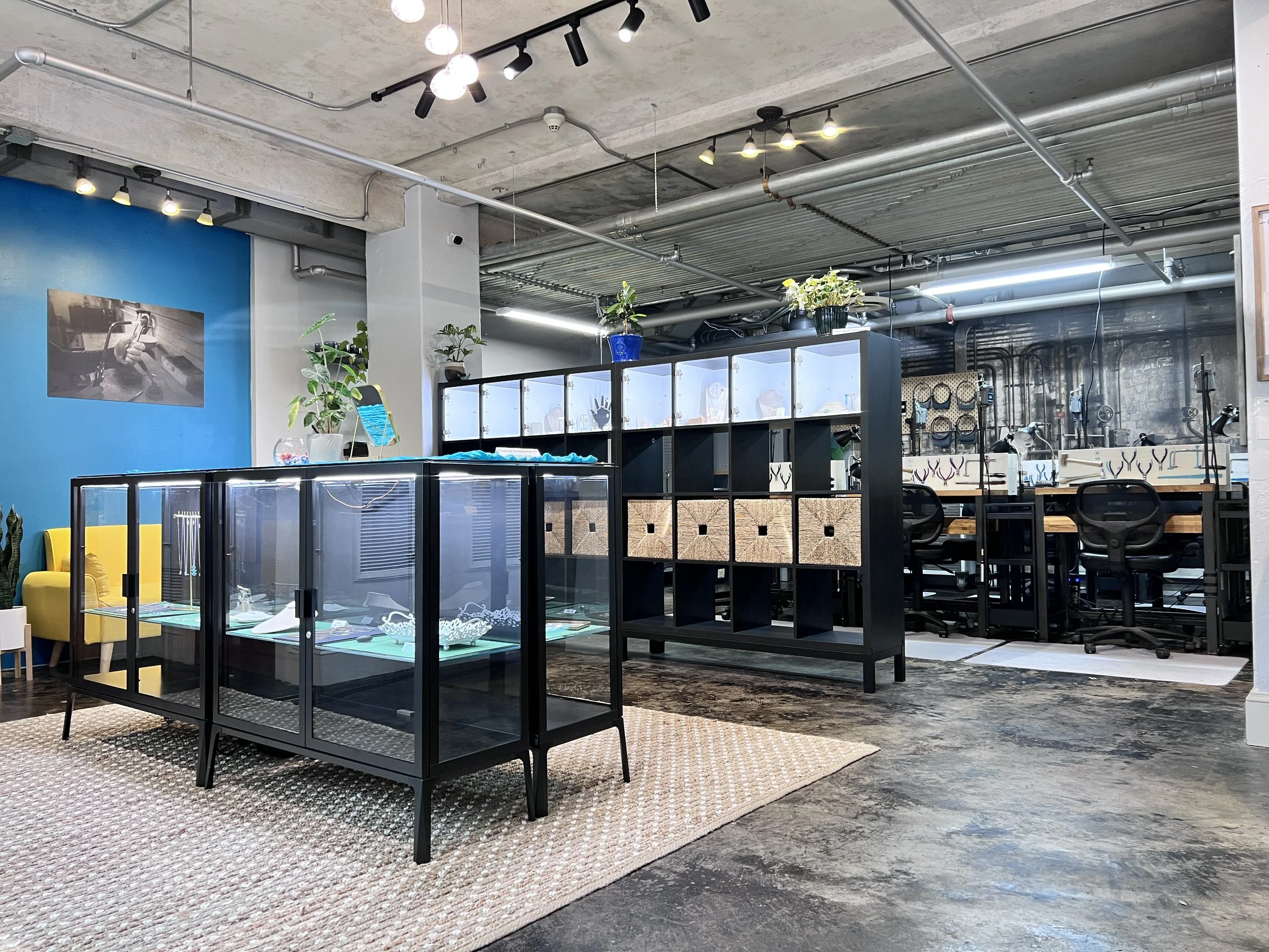 And lastly we offer a safe, creative, and supportive space for our resident jewelers. This select group of jewelers utilize the tools, equipment, and camaraderie to design and fabricate their individual work out of Ignite Jewelry Studios.