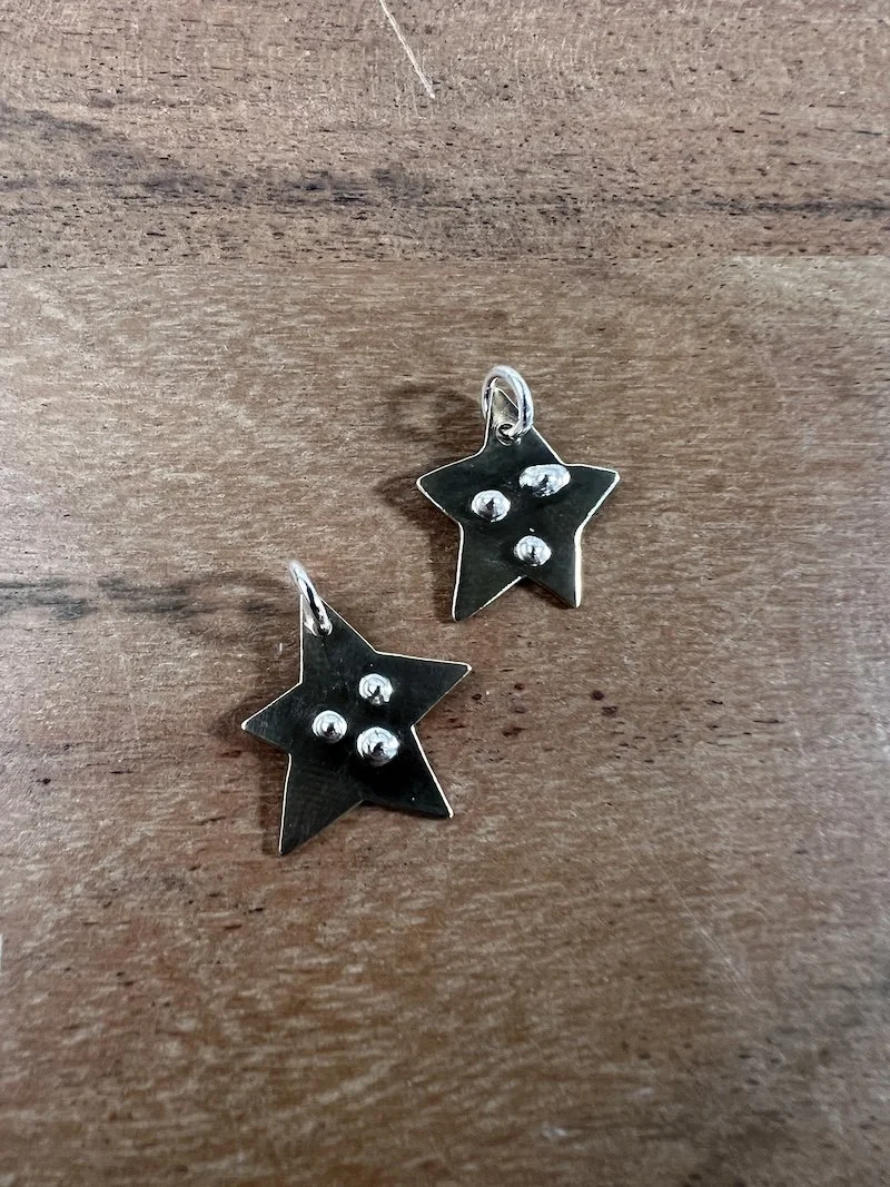 Make it yourself! Join us at our downtown Asheville metalsmithing studio to make this adorable silver + brass star charm. You will make your silver accent beads then solder them atop using a torch. Spend a bit more time cleaning it up using a variety of traditional jewelry making tools and you will leave with your finished charm!