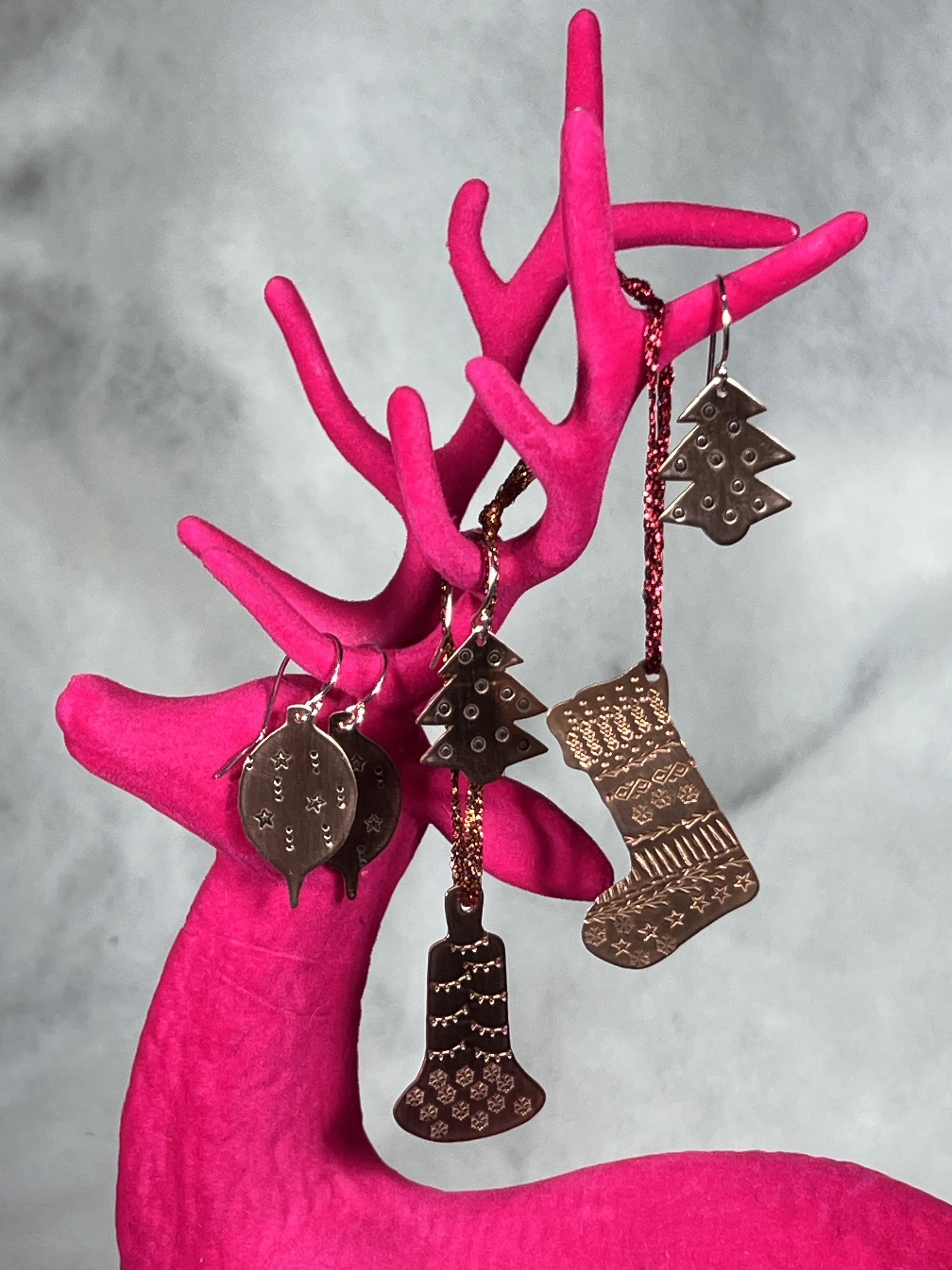 Celebrate Ignite’s return after the floods and enjoy light refreshments as you explore our studio and gallery. Browse our curated selection of handmade jewelry by local artisans for all your holiday gifting needs, or join us for a festive ornament-stamping workshop! Create your own copper ornament, brass or silver charm, or even a pair of earrings—and feel free to purchase extra blanks for additional gifts. Choose from over 50 metal stamp designs to personalize your piece.
