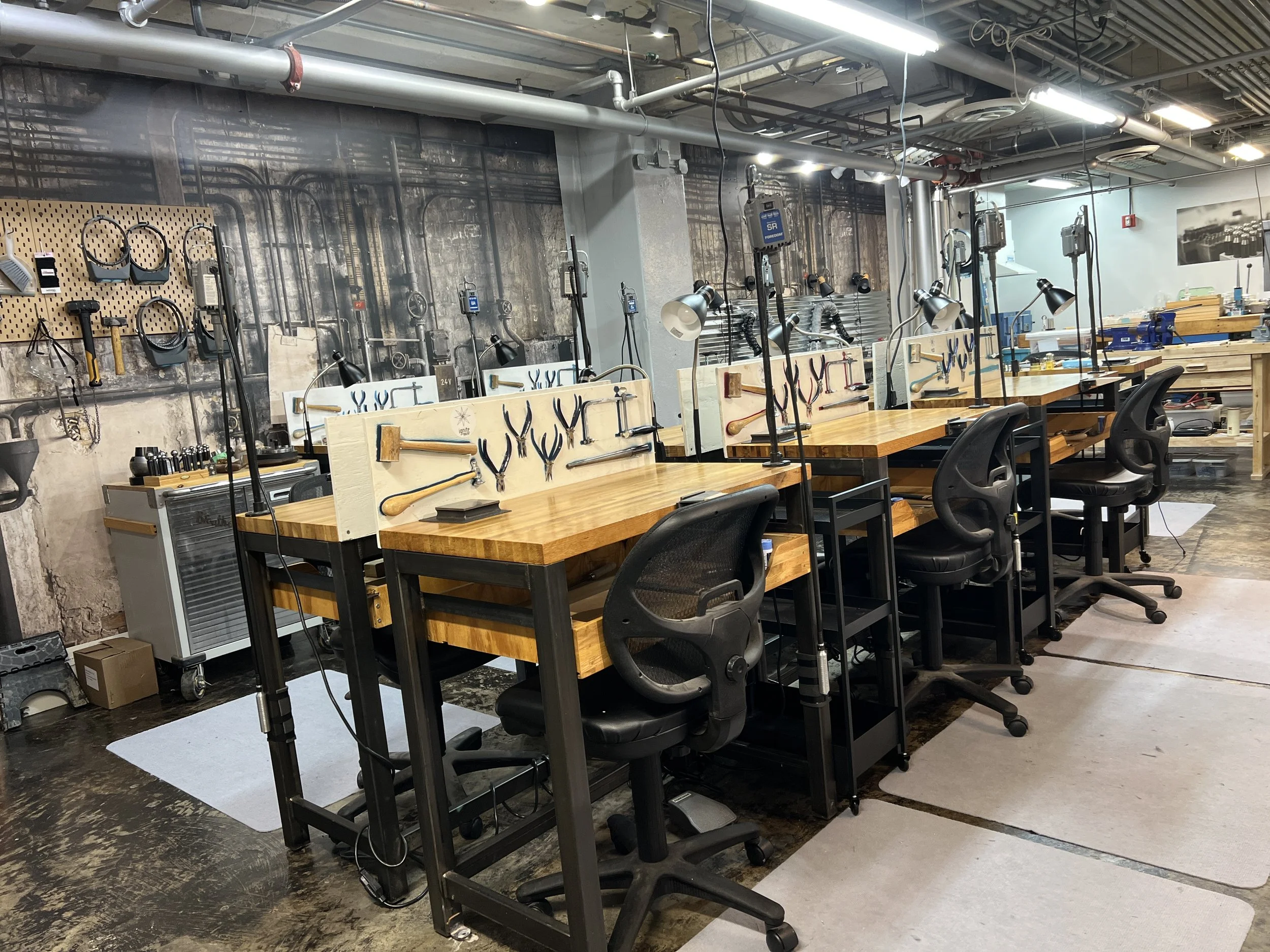 Open Studio is a time where jewelers and metalsmiths can come fabricate while a knowledgable instructor is present. This time is for independent working and not for private instruction. Some experience is necessary.