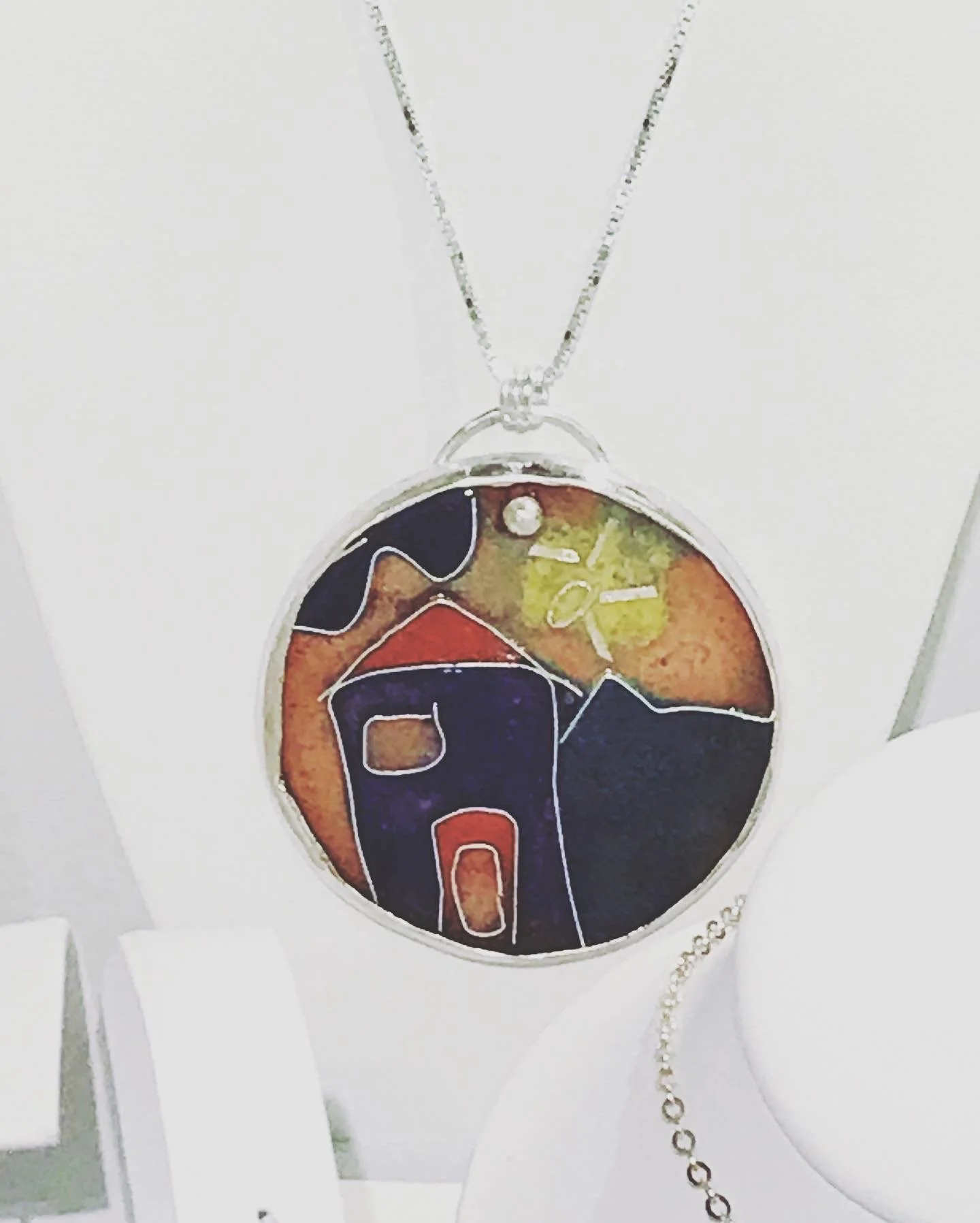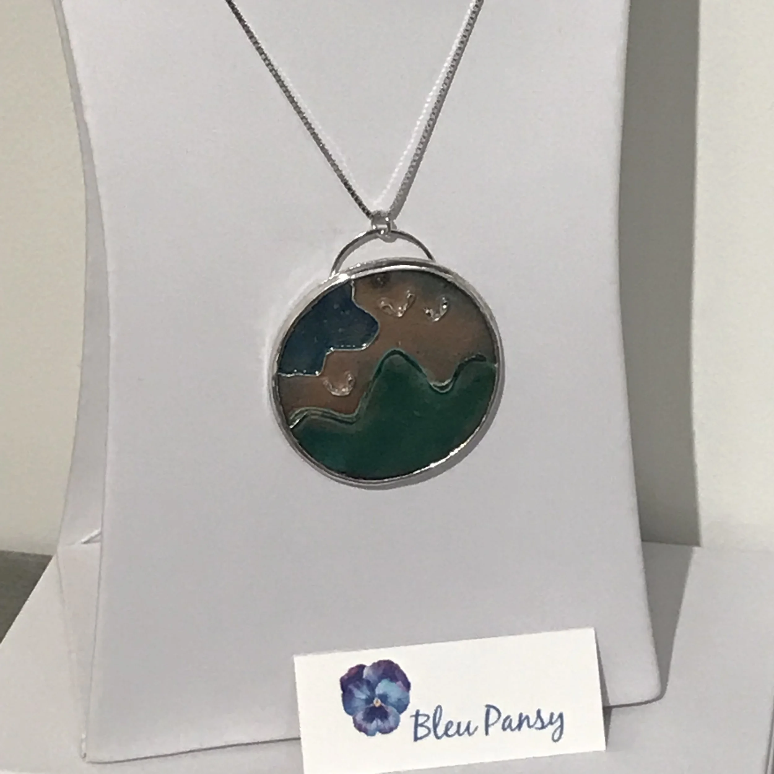 My life has always been centered around color, nature and textiles. Painting small flowers or bringing a tree to life on a Sterling Silver pendant with green glass fused in a process through heating crystals in a kiln is amazing! I will never tire of the fulfillment and happiness I experience each time I finish a piece of jewelry!